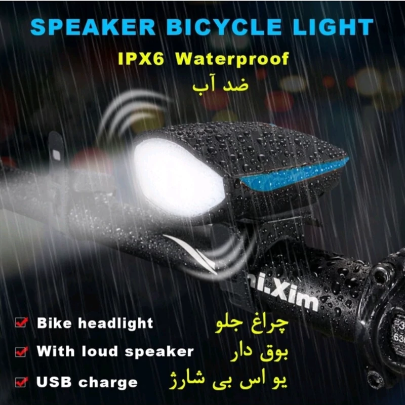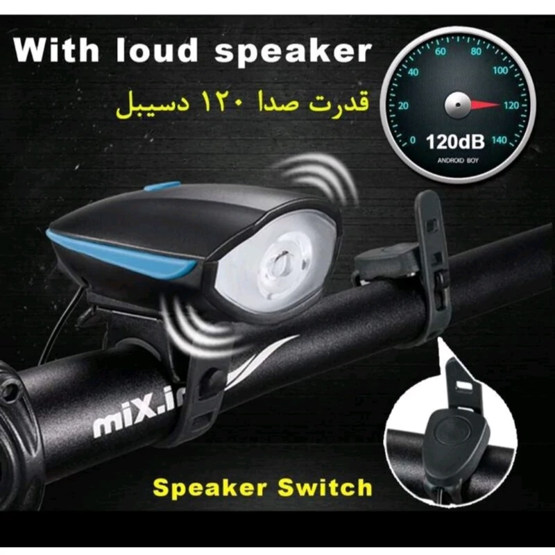 چراغ جلو دوچرخه بوقدار شارژی (به همراه کابل USB)