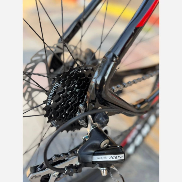 مشخصات : الیاژ تنه آلومیمنیوم 6061 دسته دنده شیمانو دسته ترمز و کالپیر ترمز شیمامو m315 شانژمان اسرا نقره ای طبق عوض کن شیمانو ترنی طبق قامه پروویل آلومینیوم میل تنه بلبرینگ میل توپی ها بلبرینگ joytech کمک سانتور ولوز قفل شونده تایر کندا ابریشم